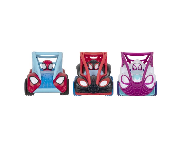 כלי רכב מגוונים אלה בגודל של כ-6 אינץ’ כוללים את Spidey, Ghost-Spider ו-Miles Morales: Spider-Man כפי שהם מופיעים בסדרת הטלוויזיה המצליחה