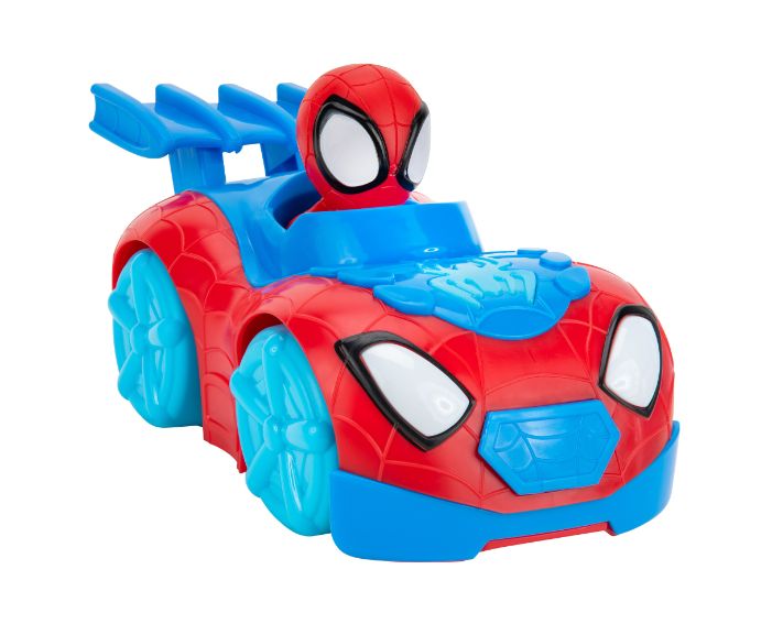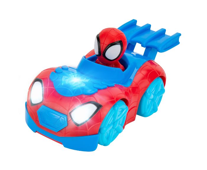 לחצו על ראשו של ספיידי פעם אחת כדי להפעיל את הרכב- סמל מכסה המנוע, הפנסים האחוריים והפנסים הקדמיים שלו יהבהבו כשצלילי המנוע יתעוררו לחיים